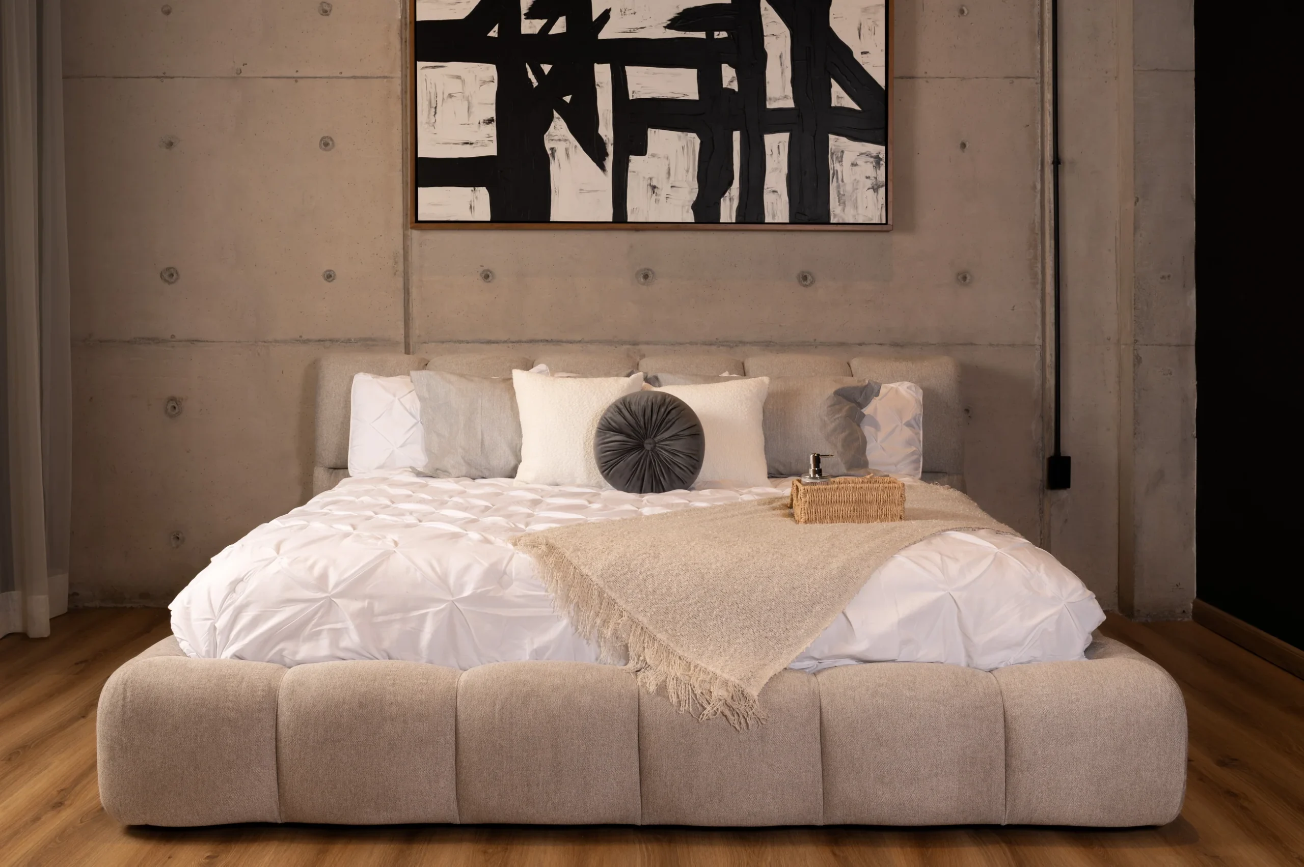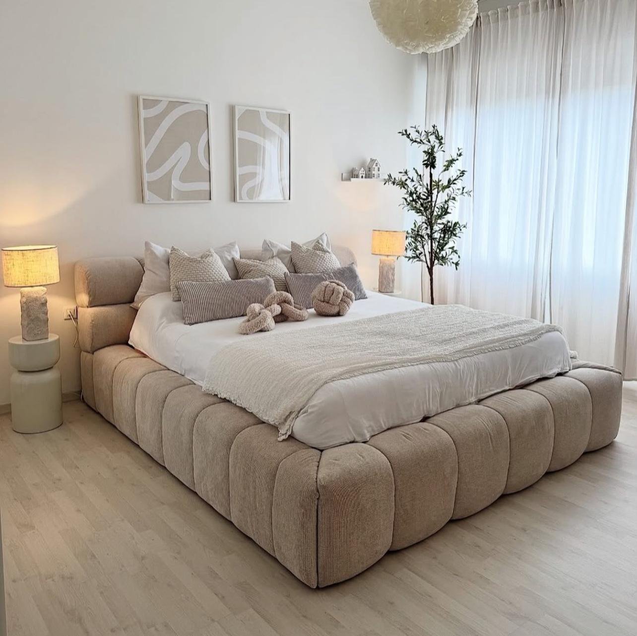 La Cama Bosco convierte tu habitación en un espacio de calma y confort. Su tapizado artesanal y formas envolventes crean una atmósfera cálida, donde el descanso se vive con estilo y serenidad.