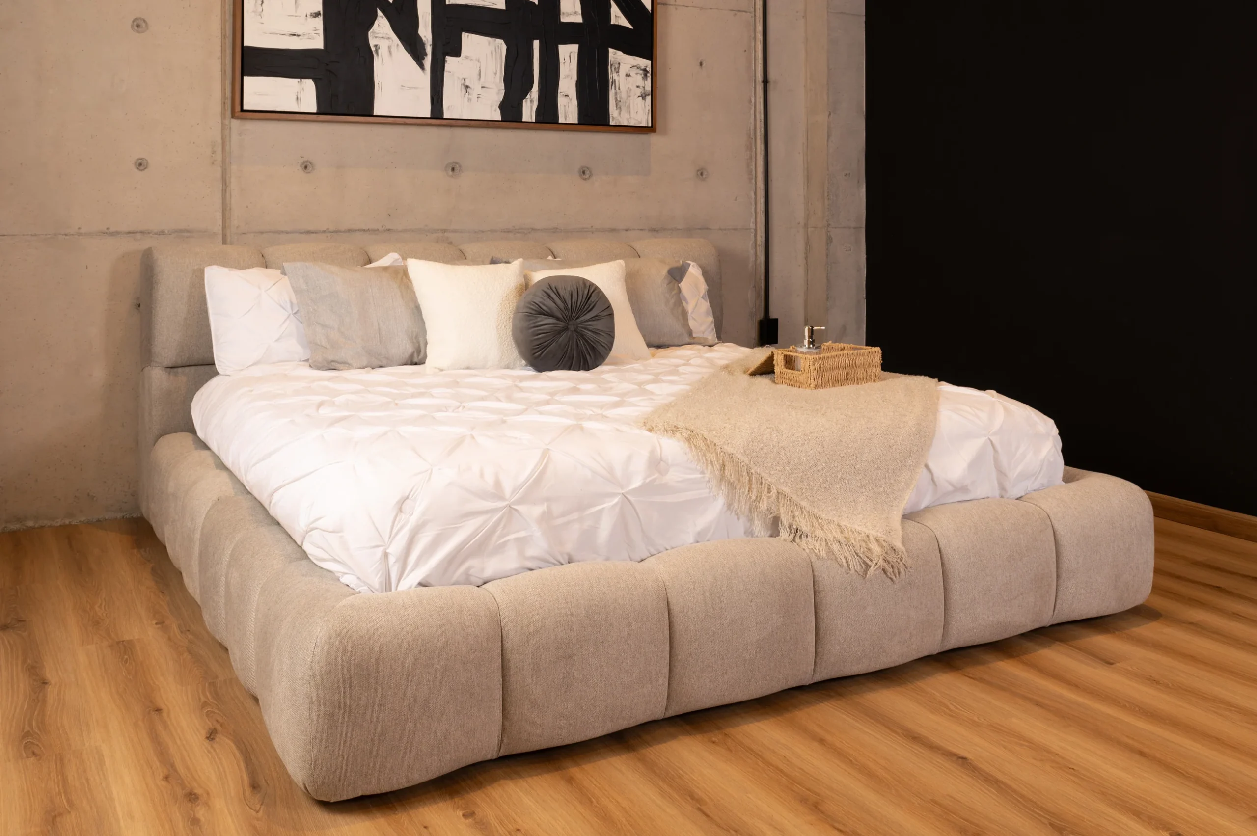 La Cama Bosco combina tapizado artesanal y estructura sólida, logrando una pieza elegante, acogedora y duradera.