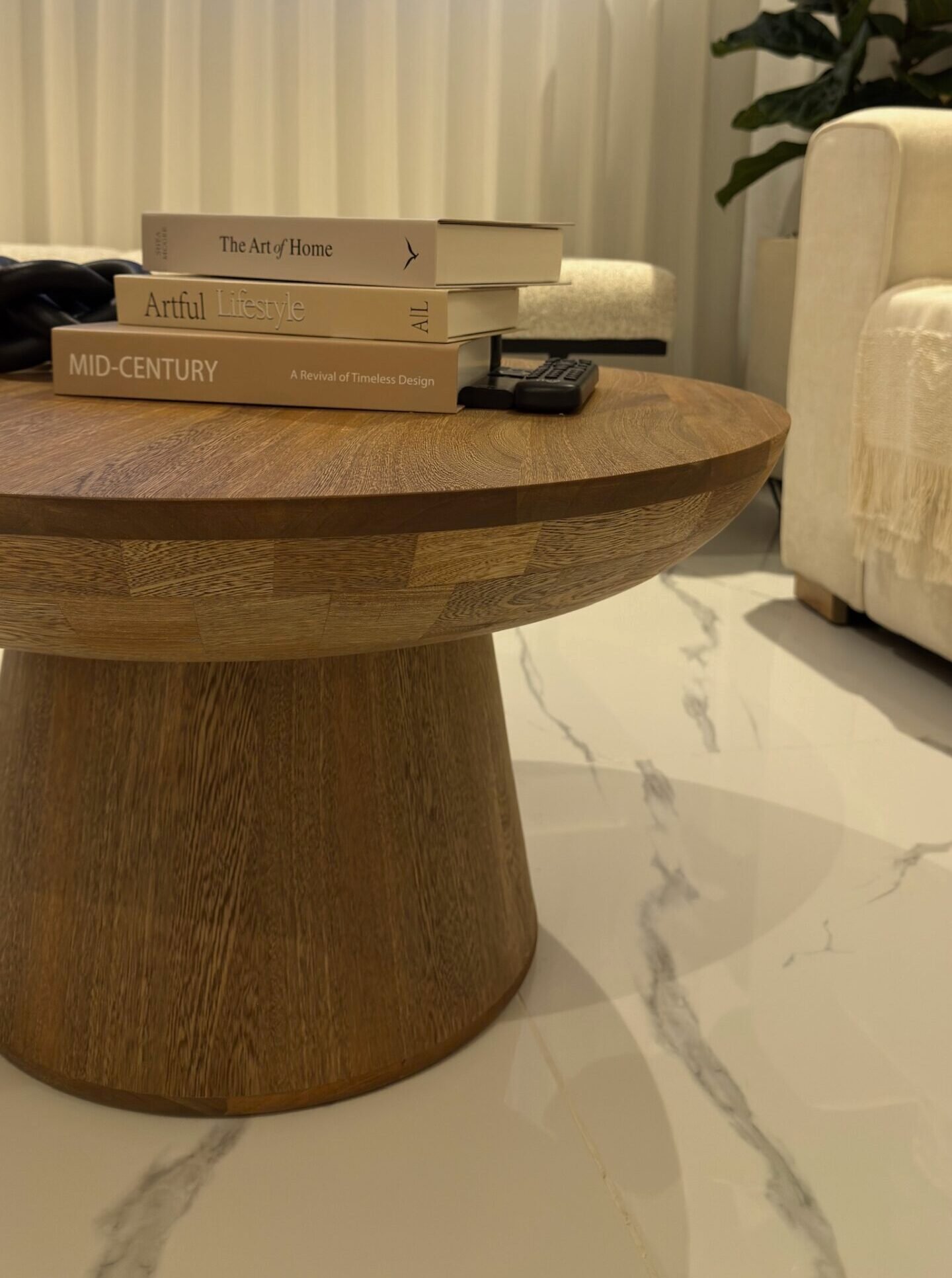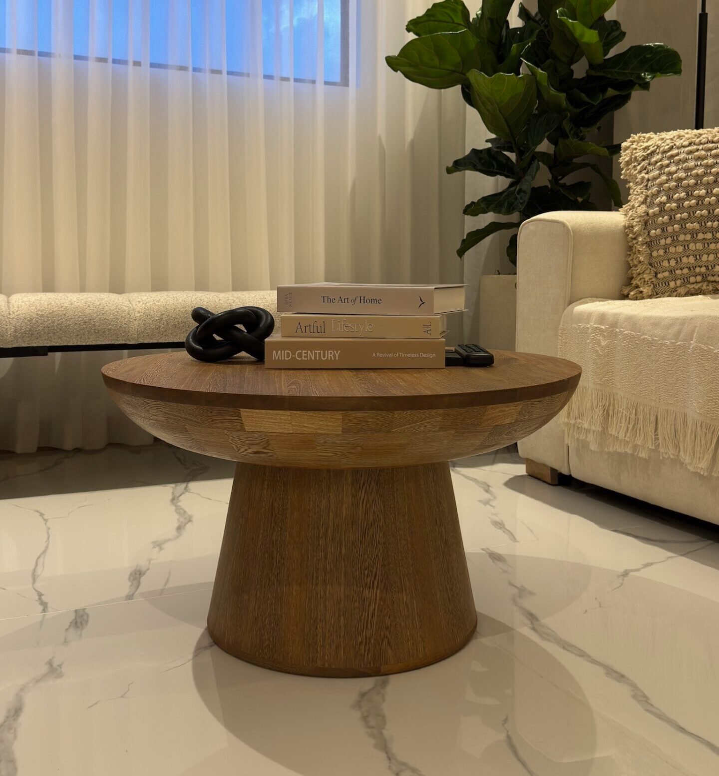 La mesa de centro Milán combina proporciones equilibradas y líneas suaves que aportan armonía a cualquier sala. Su forma redonda y superficie en madera natural evocan calidez y equilibrio, mientras su diseño contemporáneo la convierte en un punto de encuentro funcional y elegante. Perfecta para quienes buscan piezas con carácter artesanal y presencia atemporal.