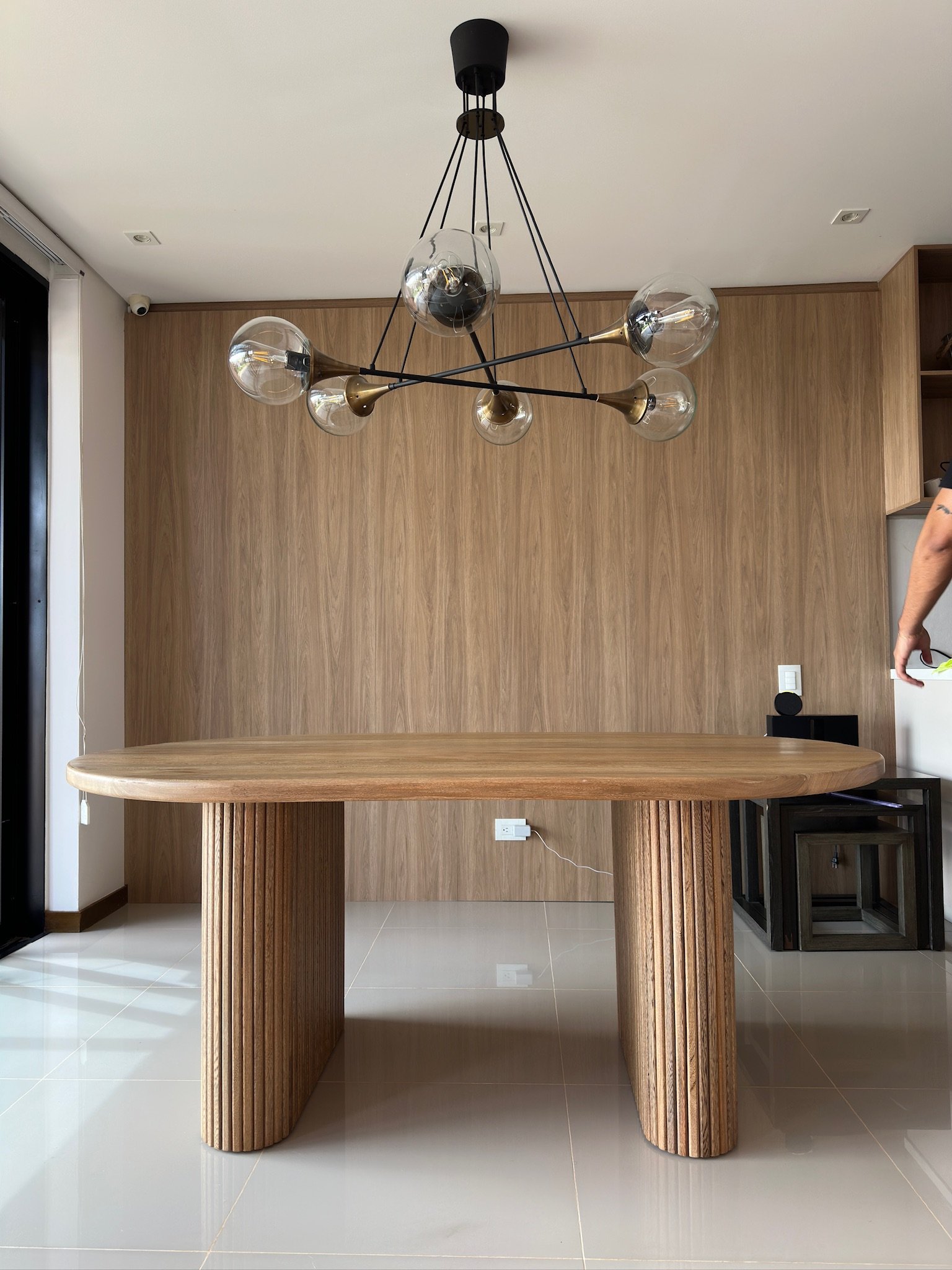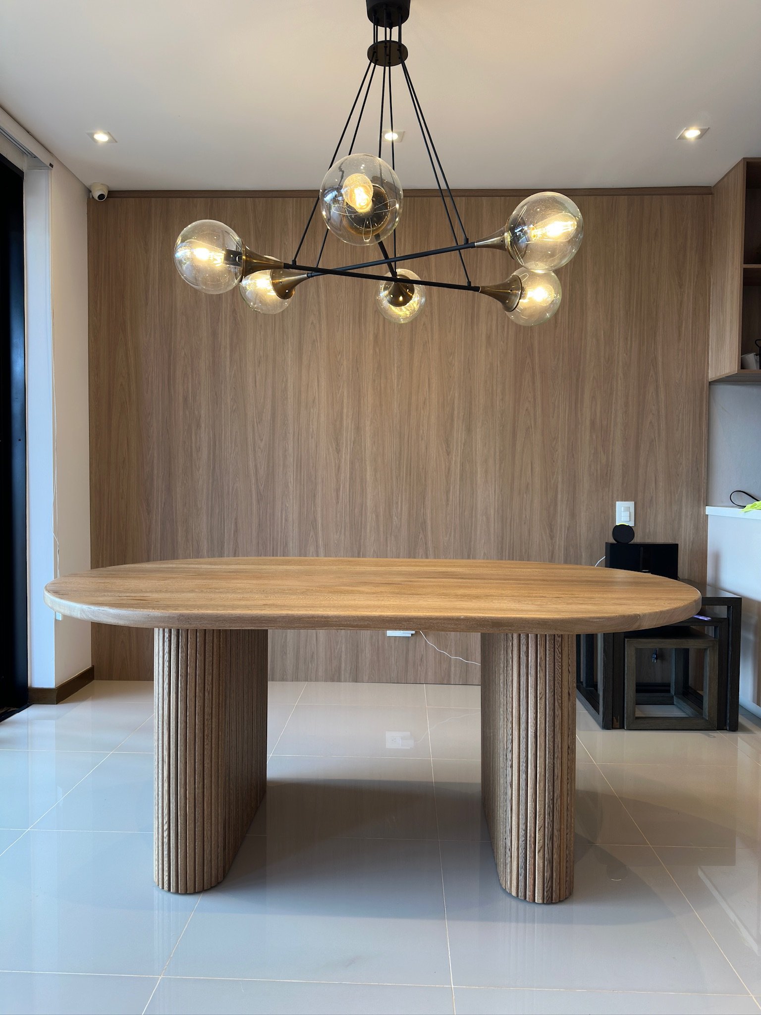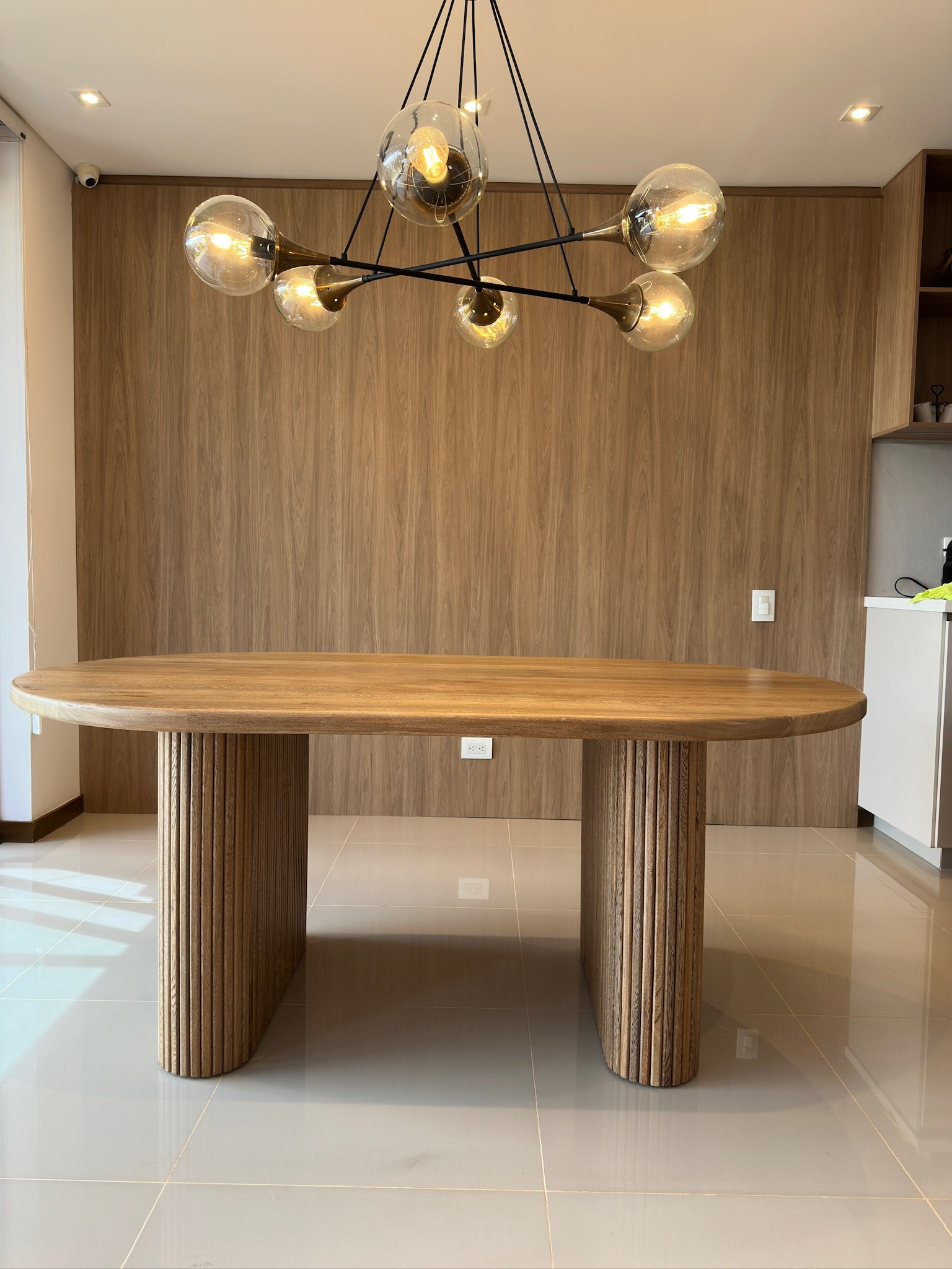 La Mesa de Comedor Terra Nova combina lo mejor del diseño contemporáneo con la calidez de la madera natural. Su forma ovalada es ideal para aquellos que desean maximizar el espacio sin perder estilo. Fabricada en roble macizo, su base es robusta y está diseñada para durar, mientras que su acabado suave al tacto la convierte en la pieza perfecta para cualquier hogar.